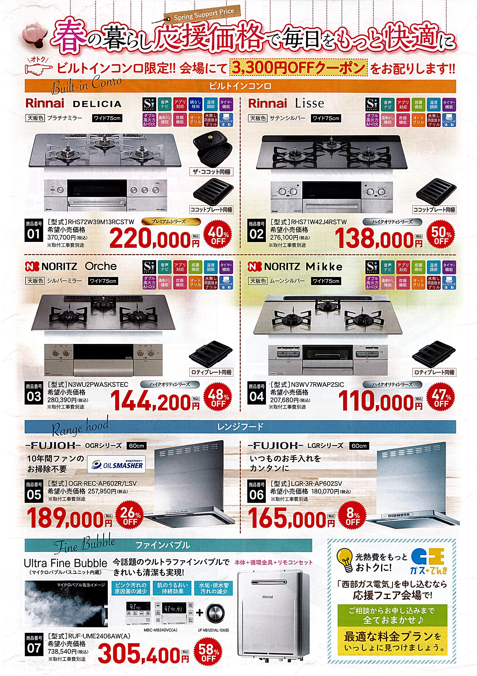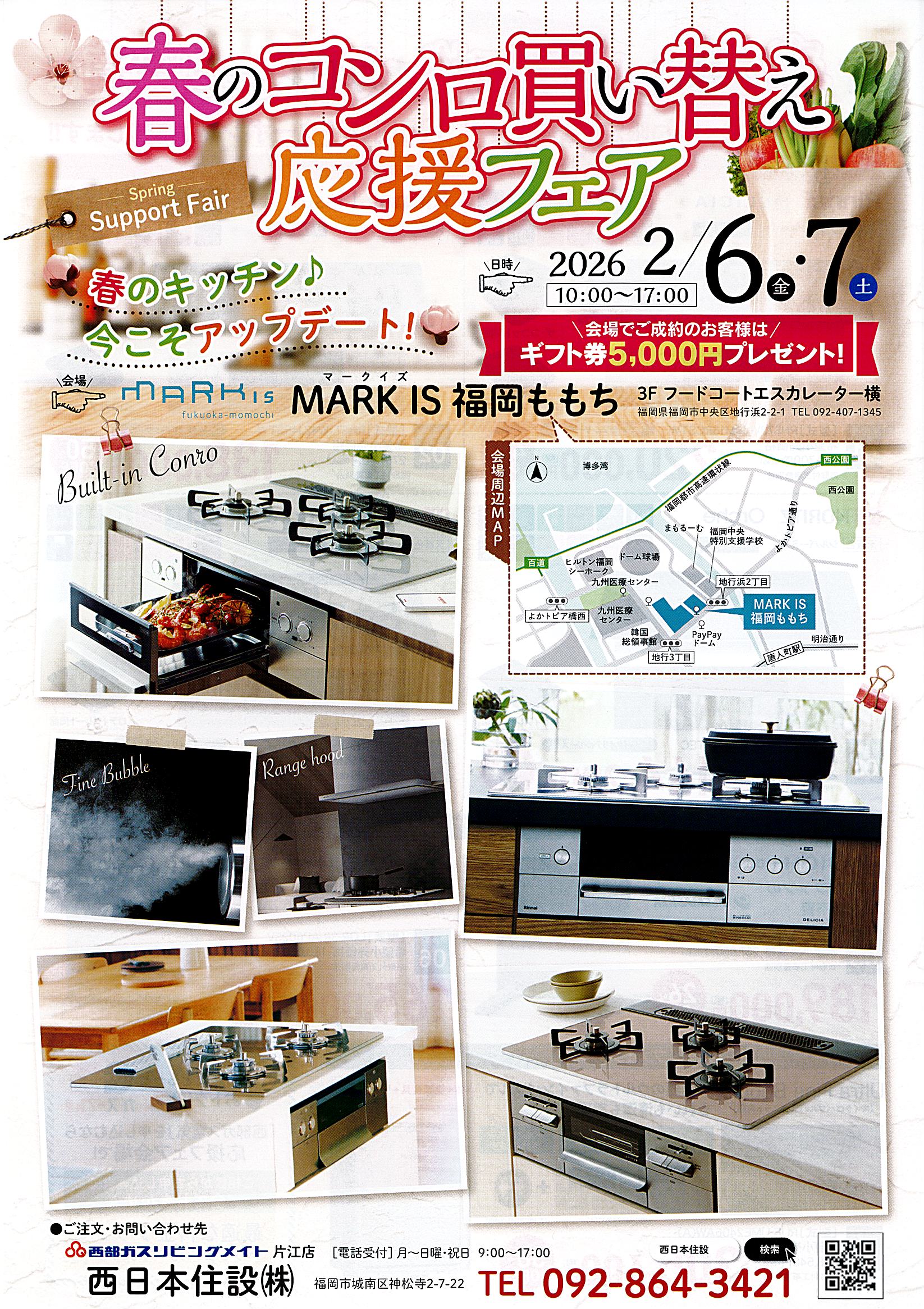 2026/01/21 春のコンロ買い替え応援フェア 皆様、こんにちは 春のコンロ買い替え応援フェア を開催致します お得なクーポン等配布あります 日時:2026年2月6日㊎・7日㊏ 時間:10:00~17:00 会場:MARKIS福岡ももち (3F フードコートエスカレーター横)